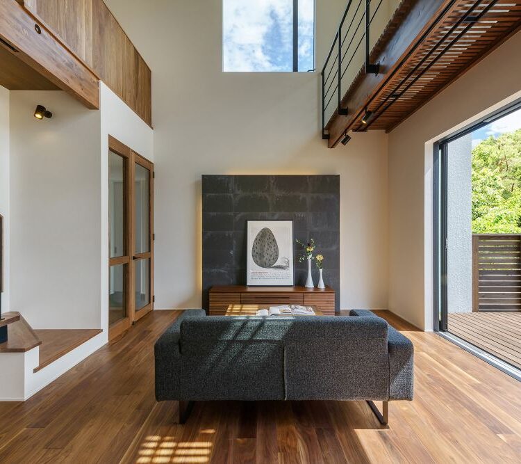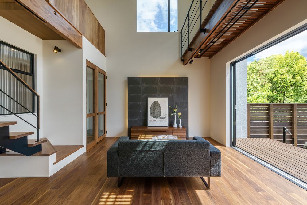 そんな思いから生まれたこちらの住まいは、大開口の窓と吹き抜けが印象的な設計。